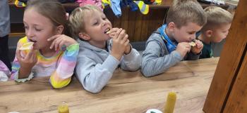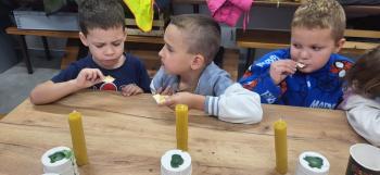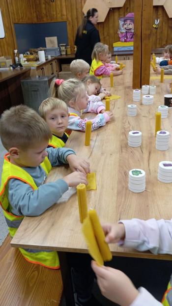 23 września w ramach projektu „Poznaję, eksperymentuję, tworzę – podnoszenie jakości edukacji przedszkolnej w Przedszkolu Samorządowym w Brzezince” Kotki i Jeżyki uczestniczyły w wycieczce do Apilandii. W tym miejscu przedszkolaki mogły przenieść się do świata pszczół. Dzieci brały udział w warsztatach, podczas których wykonały świeczki z pszczelego wosku, próbowały pyłek pszczeli, miód, a w pszczelim mieście dowiedziały się kto mieszka w ulu, jak zbudowana jest pszczoła, jakie są mododajne rośliny. Dzieci z ciekawością oglądały film o pracy pszczelarza.
