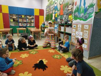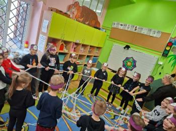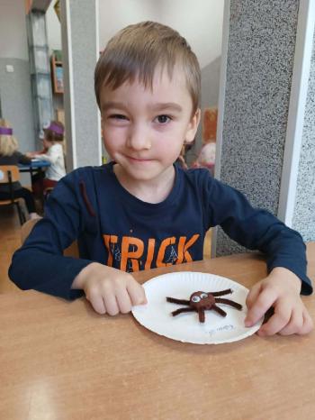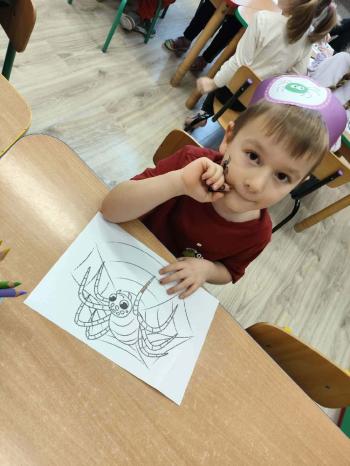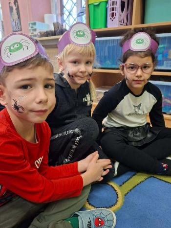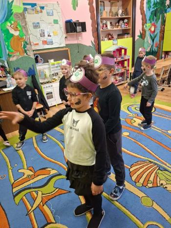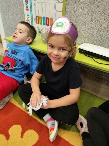 Dnia 18 grudnia w naszym przedszkolu odbył sie rytmiczny Dzien Robaczka- Pająka;). W tym dniu dzieci mialy wiele atrakcji, malowanie buziek, prace plastyczne i zabawy tematyczne. Wysłuchaliśmy opowiadania pt. " Nie taki straszny potwór " z serii Robaczki z Leśnej Paczki autorstwa Pani Jolanty Zapały, a na koniec dnia odbyła sie rytmika z Panem Humorkiem w pająkowej tematyce:)
