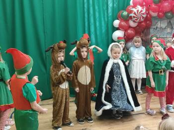 W naszym przedszkolu odbyło się świąteczne przedstawienie pt. „Mikołaj i jego magiczne elfy”. Aktorzy przeniosły dzieci do fabryki Elfów, w której razem z Mikołajem, Panią Zimą i reniferami przygotowywały się do Świąt Bożego Narodzenia. Spektakl w piękny sposób pokazał, że najważniejsze są wspólnie spędzone chwile, radość i bycie razem, a nie prezenty. Przedstawienie zakończyło się radosnym tańcem wszystkich bohaterów, wprowadzając widzów w świąteczny nastrój.