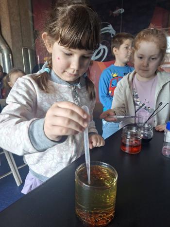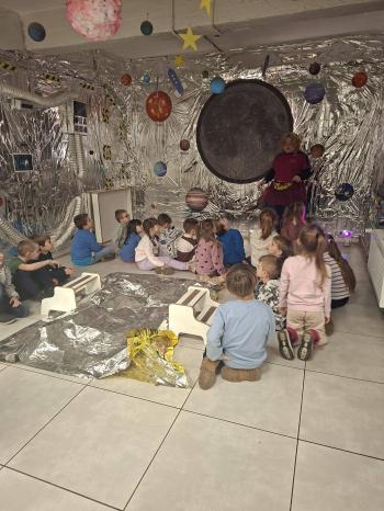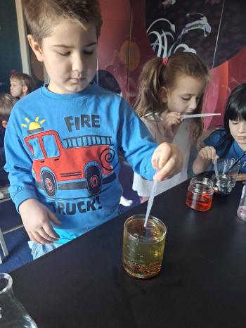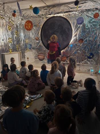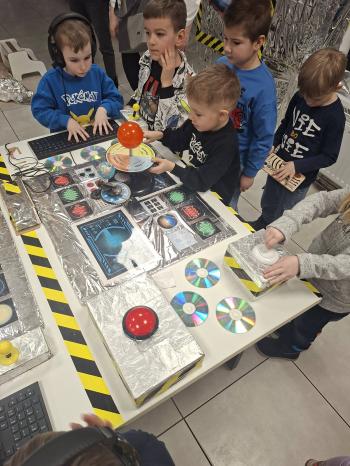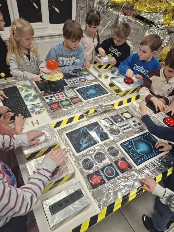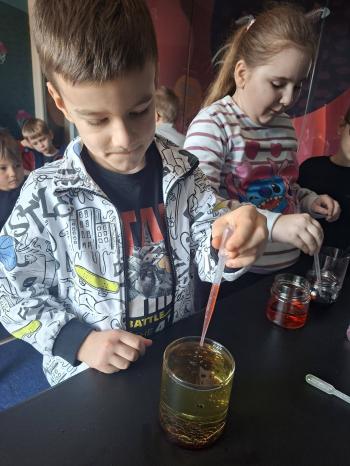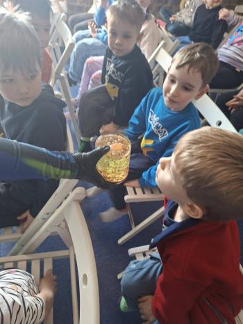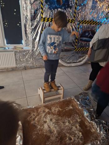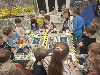 Przedszkolaki przeniosły się do świata Akademii Pana Kleksa, gdzie czekały na nie fantastyczne eksperymenty, kreatywne zadania i mnóstwo radości. Dzieci z ogromnym zainteresowaniem odkrywały tajemnice akademii, rozwijały swoją wyobraźnię i świetnie się bawiły.