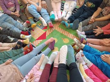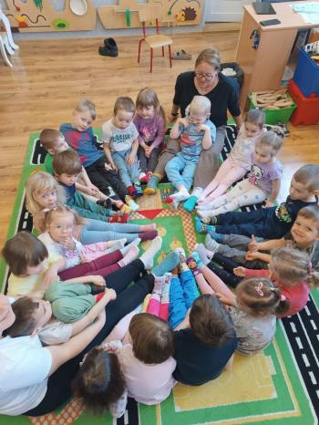 23 marca w naszym przedszkolu obchodziliśmy Dzień Kolorowej Skarpetki. Tego dnia dzieci przyszły w różnych, kolorowych i niepasujących do siebie skarpetkach, aby pokazać, że każdy z nas jest inny i wyjątkowy. Podczas zajęć rozmawialiśmy o tolerancji, akceptacji oraz o tym, jak ważne jest szanowanie innych osób.